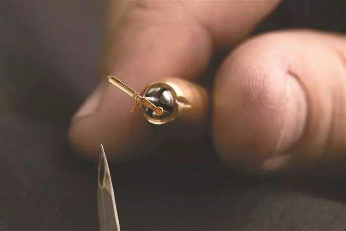 ▲瑞士顶级珠宝匠人手工打磨指针。