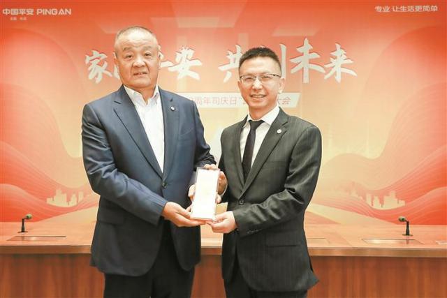 ▲2020年5月,在平安集团32周年司庆大会上,平安集团董事长马明哲为胡玮 (右)授予集团三级勋章。