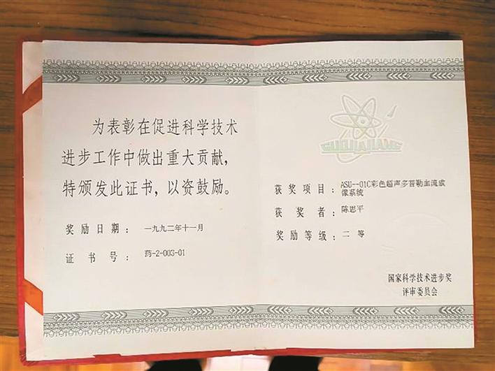▲1992年,陈思平第二次获国家科技进步奖。