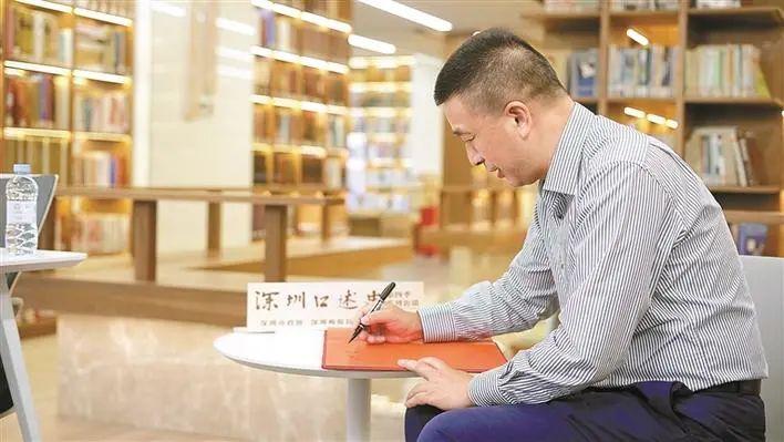 何贤波在接受采访后为《深圳口述史》留言纪念。深圳晚报记者 方舟 摄