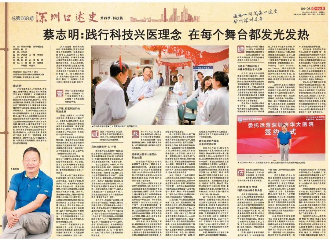 深圳口述史 | 蔡志明:践行科技兴医理念 在每个舞台都发光发热