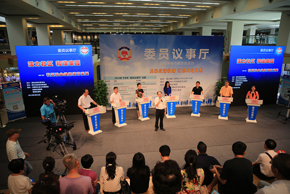 9月20日下午,以“活力社区,和谐家园——社区社会组织培育发展”为主题的市政协2015年第八场委员议事厅活动在中心书城南台阶举行,活动聚焦社区社会组织的培育和发展。市政协副主席、致公党深圳市委主委王大平,市政协秘书长赵燕民等出席活动。