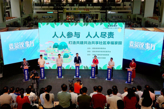 党的十九大提出,要打造共建共治共享的社会治理格局。今年全国两会期间,习近平总书记对广东在营造共建共治共享社会治理格局上走在全国前列提出明确要求。深圳如何在营造共建共治共享社会治理格局上率先突破?8月19日下午,由市政协主办、宝安区政协承办的2018年第七场“委员议事厅”在中心书城举行,活动围绕“人人参与、人人尽责,打造共建共治共享社区幸福家园”这一主题开展了热烈讨论。市政协主席戴北方、副主席王璞,区政协主席邓桂洪等参加活动。