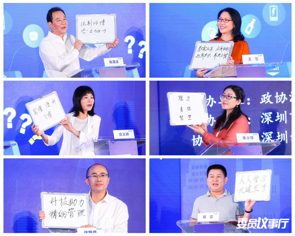 委员议事厅现场,六个委员嘉宾就深圳市垃圾分类工作给出了自己的关键词。
