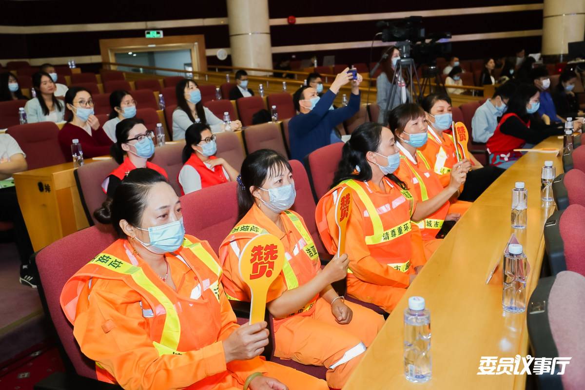 5位环卫工人也受邀来到了委员议事厅直播现场。