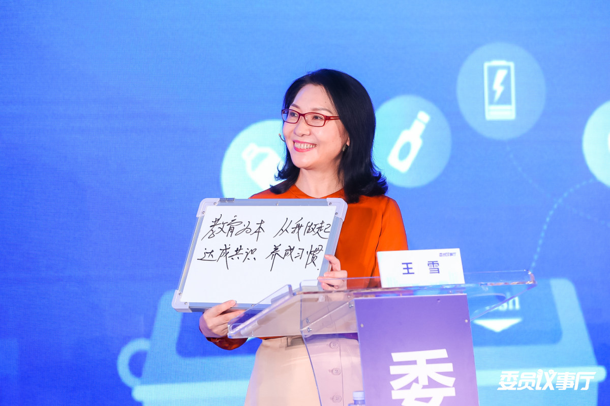 王雪委员的关键词是16个字:教育为本,从我做起,达成共识,养成习惯。