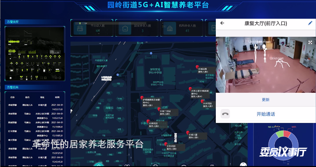 园岭街道5G+AI智慧养老平台展示图。