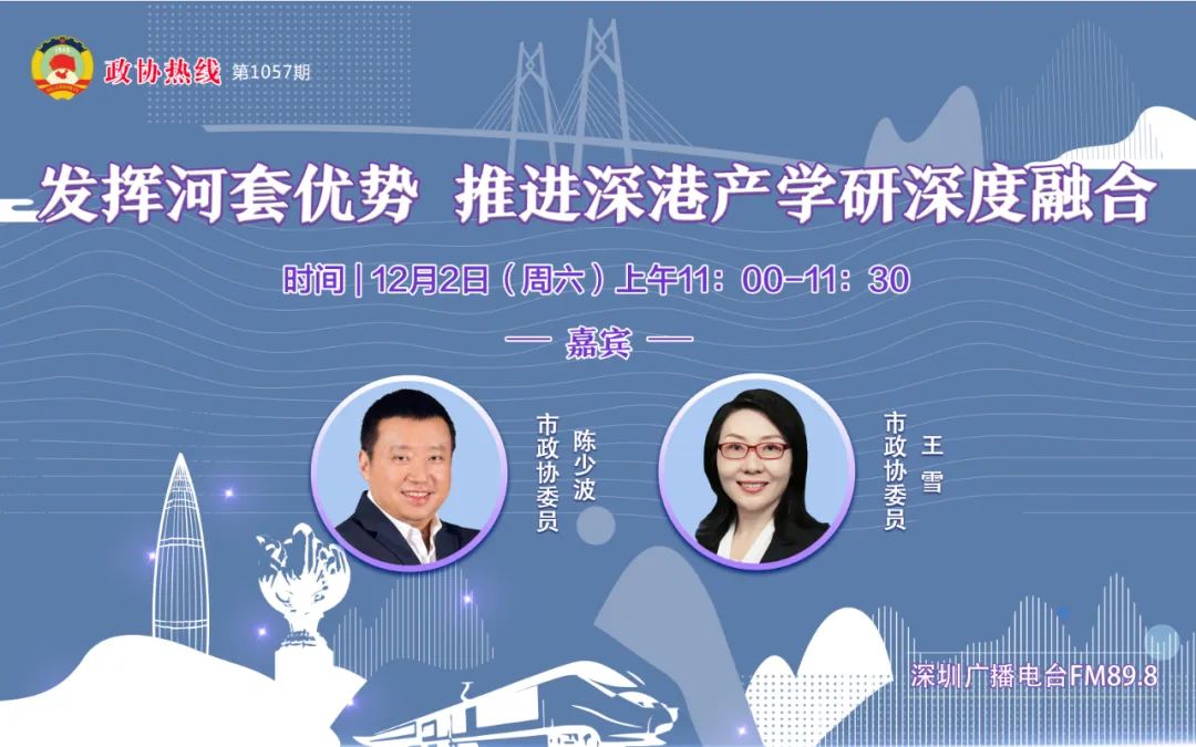 12月2日,第1057期政协热线——《发挥河套优势 推进深港产学研深度融合》在深圳广播电台FM89.8播出。节目邀请了相关政协委员,围绕“发挥河套优势 推进深港产学研深度融合”主题展开热议。