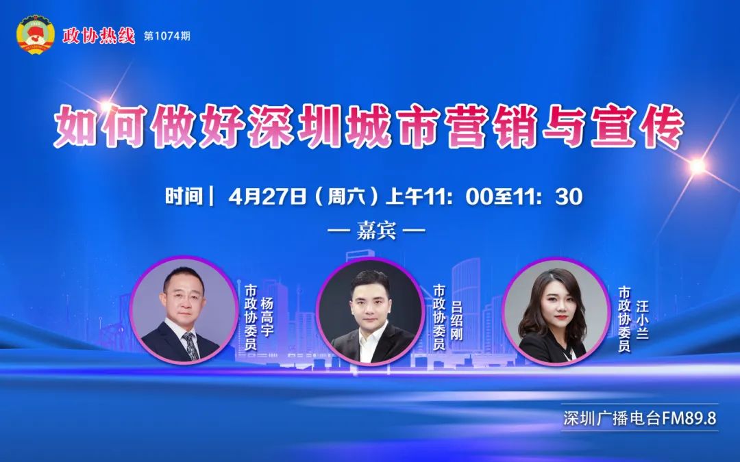 4月27日,第1074期政协热线——《如何做好深圳城市营销与宣传》在深圳广播电台FM89.8播出。节目邀请了相关政协委员,围绕“如何做好深圳城市营销与宣传”主题展开热议。